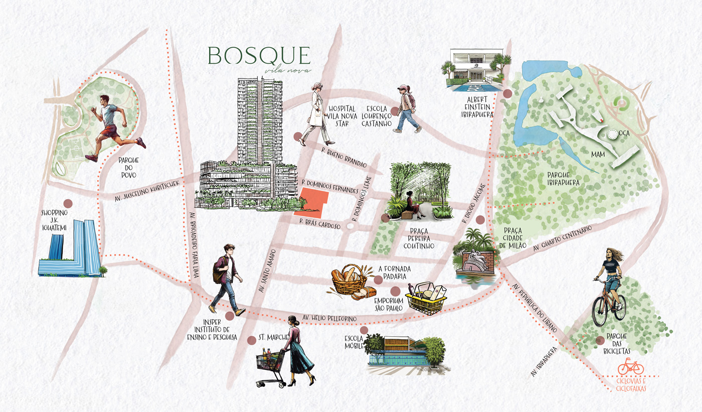 “Um projeto extraordinário também sob o ponto de vista do paisagismo. O Bosque Vila Nova é o melhor de dois mundos: no lado interno todo conforto, segurança e tecnologia dos tempos modernos, e lá fora, 92 espécies nativas criando um cenário de grande beleza.’’
